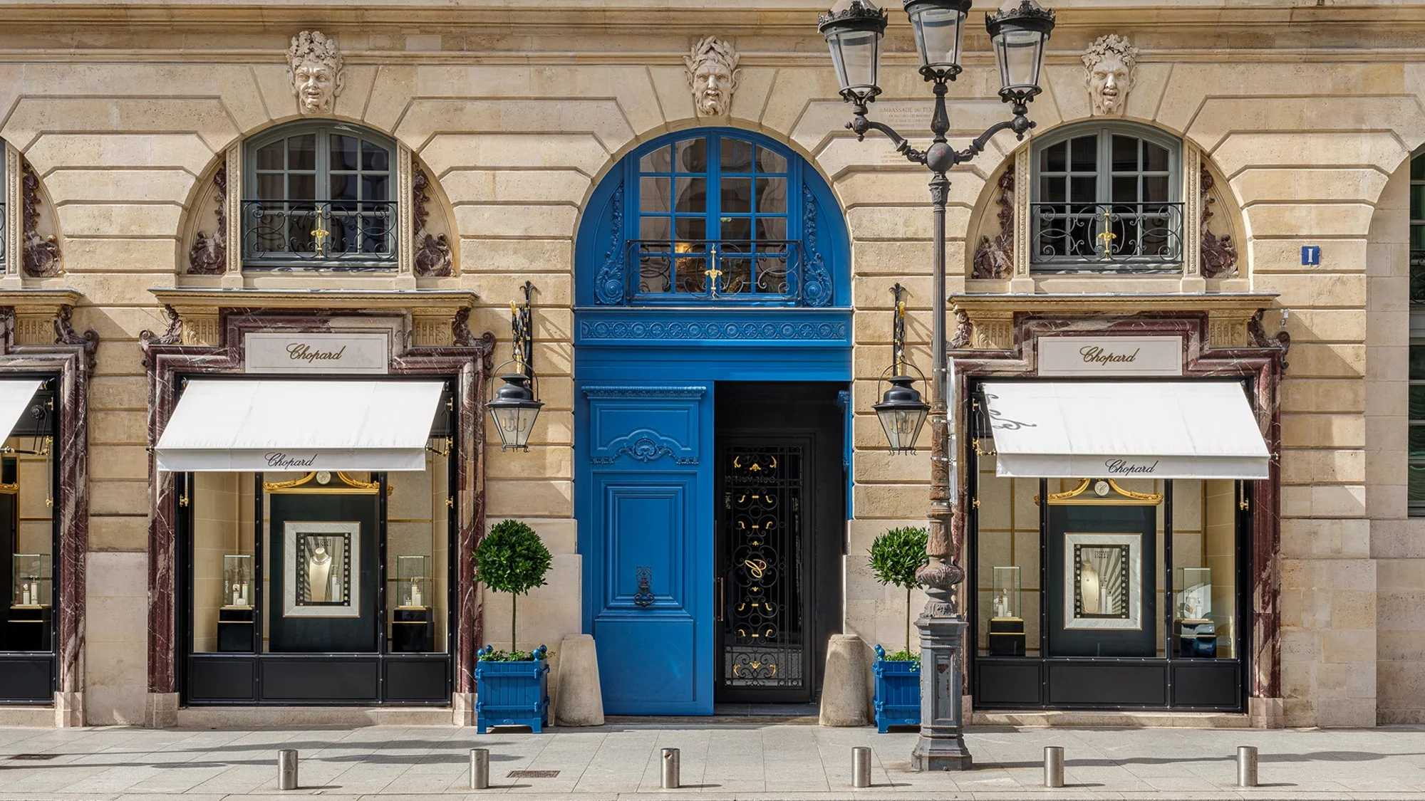 Entrance of 1, Place Vendôme: Chopard’s Parisian residence, marked by its blue doors and adjoining boutique. Photo credit | Gregory Copitet.