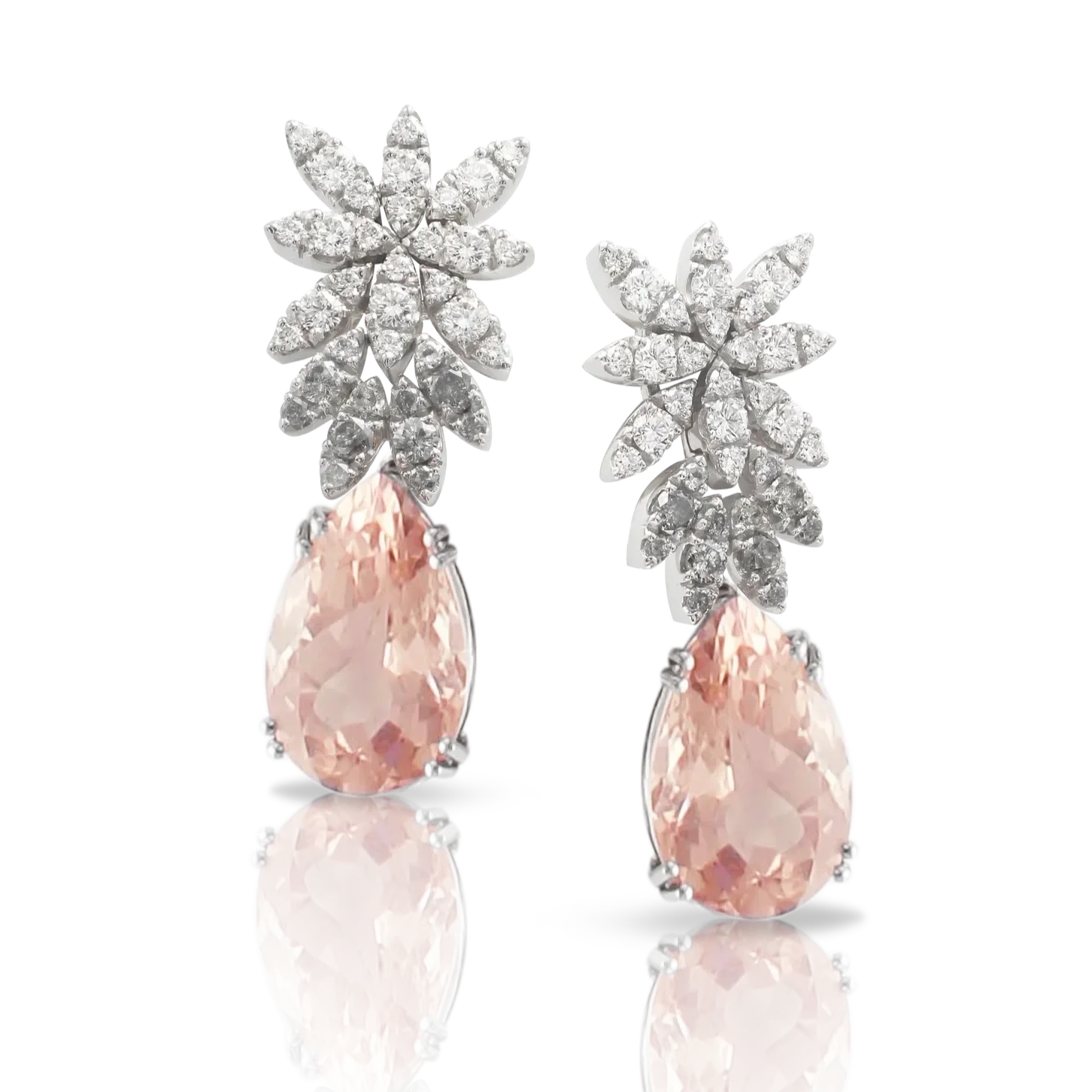 The Ghirlanda Atelier Earrings echo the same floral poetry. Crafted in 18K white gold, they combine soft pink morganite with pavé-set white and grey diamonds that glimmer with each movement.