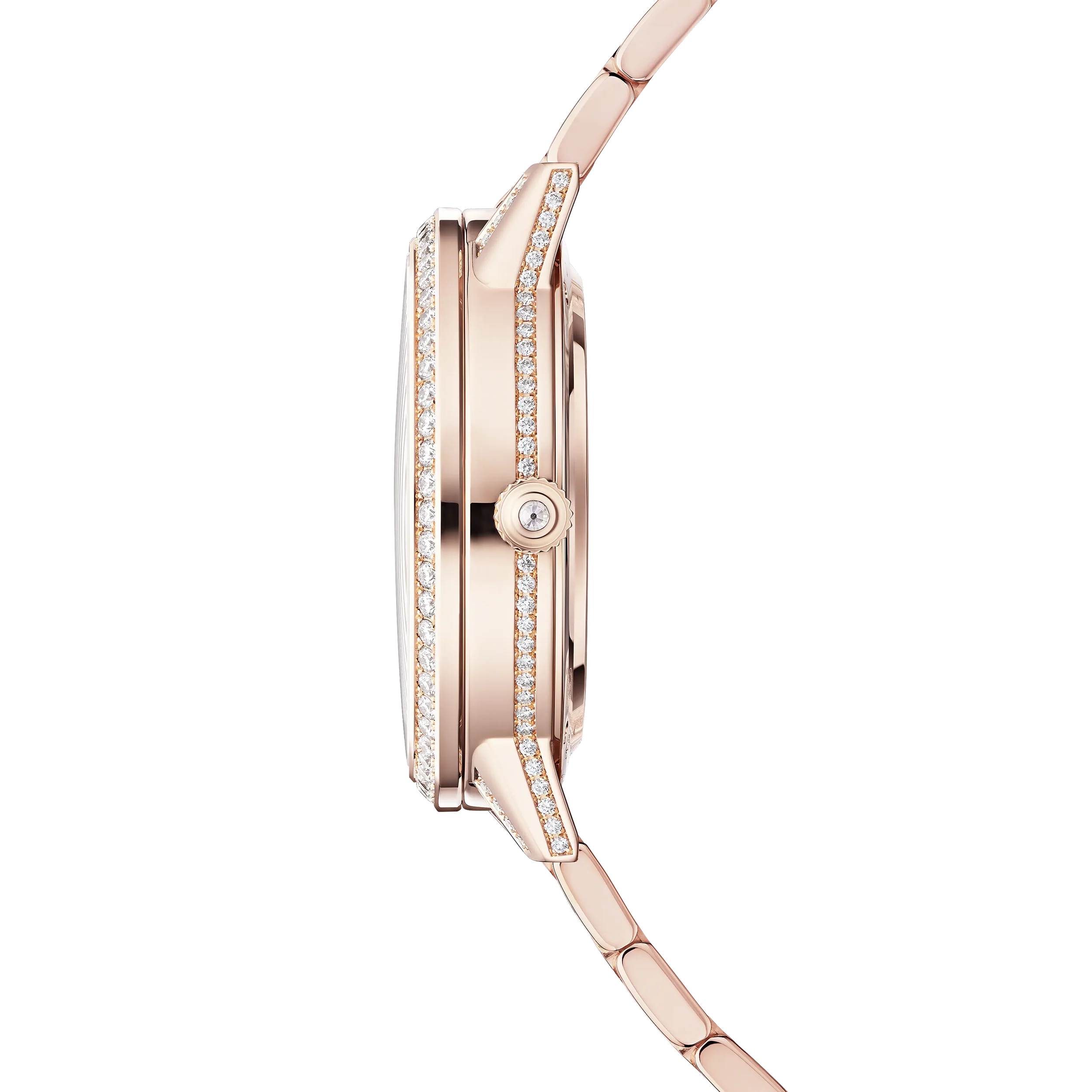 In the pink-gold edition, diamonds accentuate every detail. The watch is adorned with 625 brilliant-cut diamonds, weighing approximately 6.31 carats, set across the bezel, lugs, crown, case sides, dial, and fully integrated bracelet. The spectacle is not only visual but tactile, with each gem meticulously chosen and set to enhance brilliance without compromising wearability.