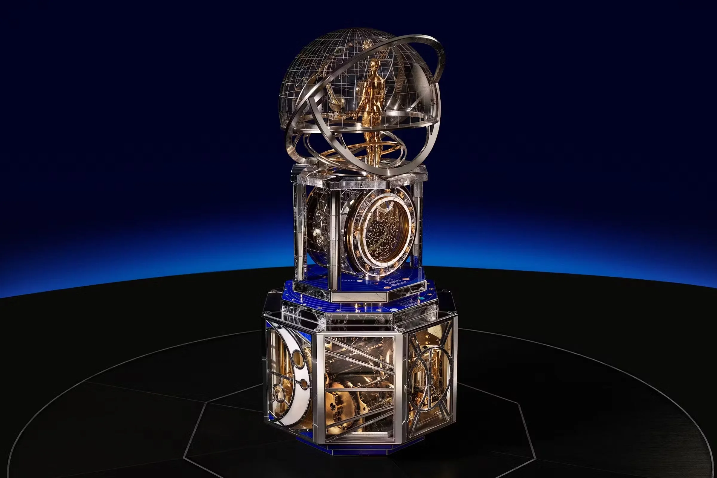La Quête du Temps was conceived over seven years of development, bringing together the finest watchmakers, automaton specialists, decorative artists, and astronomers. It unites disciplines across science and art, embodying the Maison’s enduring pursuit of beauty translated into mechanics.