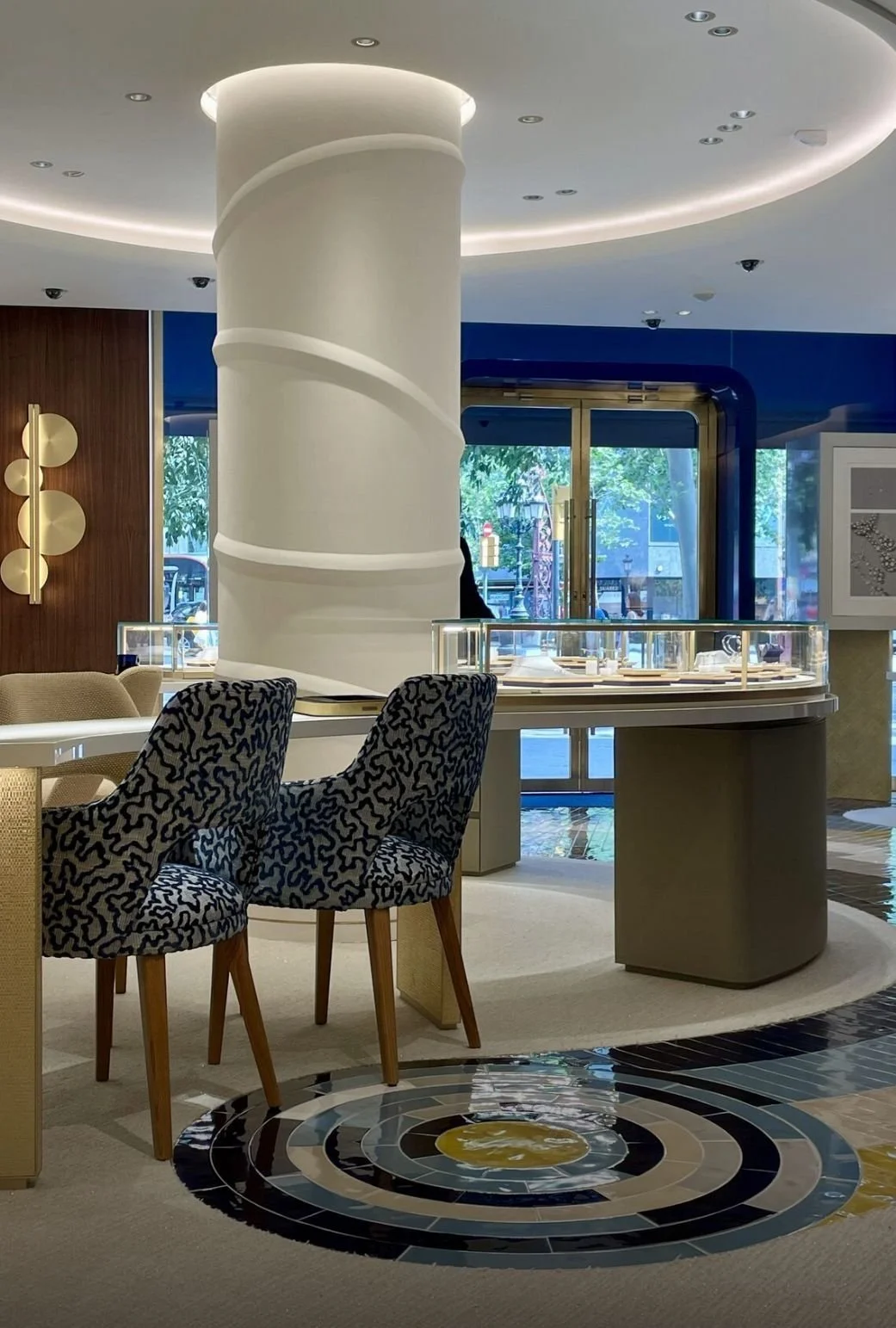The boutique’s design draws on Barcelona’s visual identity, with references to Antoni Gaudí and the organic lines of Catalan modernism translated into curved forms, mosaic details, and warm light. These elements are combined with Chaumet’s own symbolic universe — the laurel wreath, the bee, and the tiara form — creating an interior where French refinement and local artistry meet.