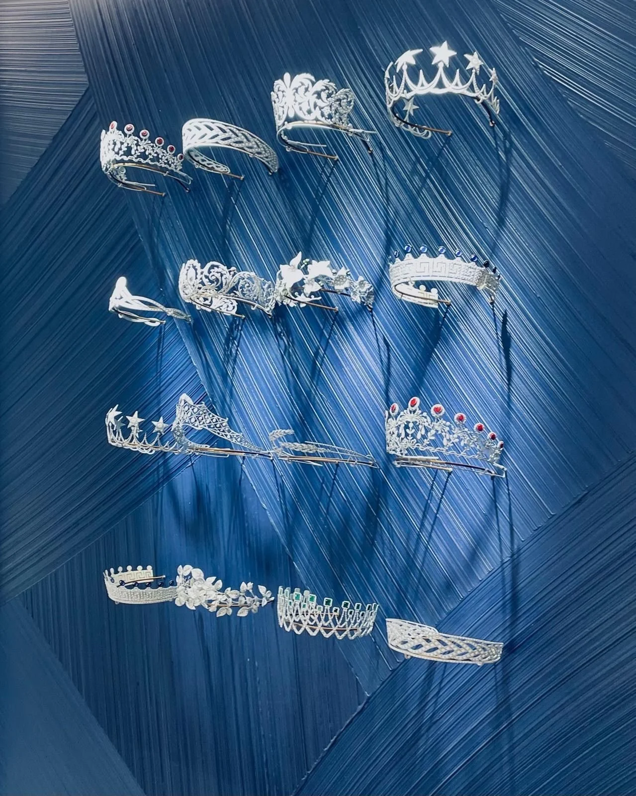 Inside, visitors encounter a wall dedicated to tiaras, the jewel that has defined Chaumet for over two centuries. Displayed as light structures floating against a deep blue backdrop, they reflect the maison’s mastery in translating history, symbolism, and craftsmanship into contemporary form. Each tiara recalls Chaumet’s historic role as jeweller to royalty while remaining a living emblem of the maison today.
